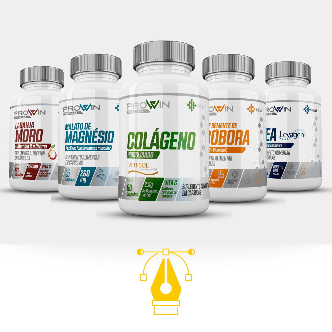 Desenvolvemos uma linha completa de suplementos premium com moléculas isoladas, priorizando pureza, eficácia e conformidade com as normas da ANVISA. Cada rótulo foi projetado com atenção aos detalhes, garantindo clareza e cumprimento das exigências legais, incluindo tabelas nutricionais, ingredientes, alergênicos e indicações de uso.